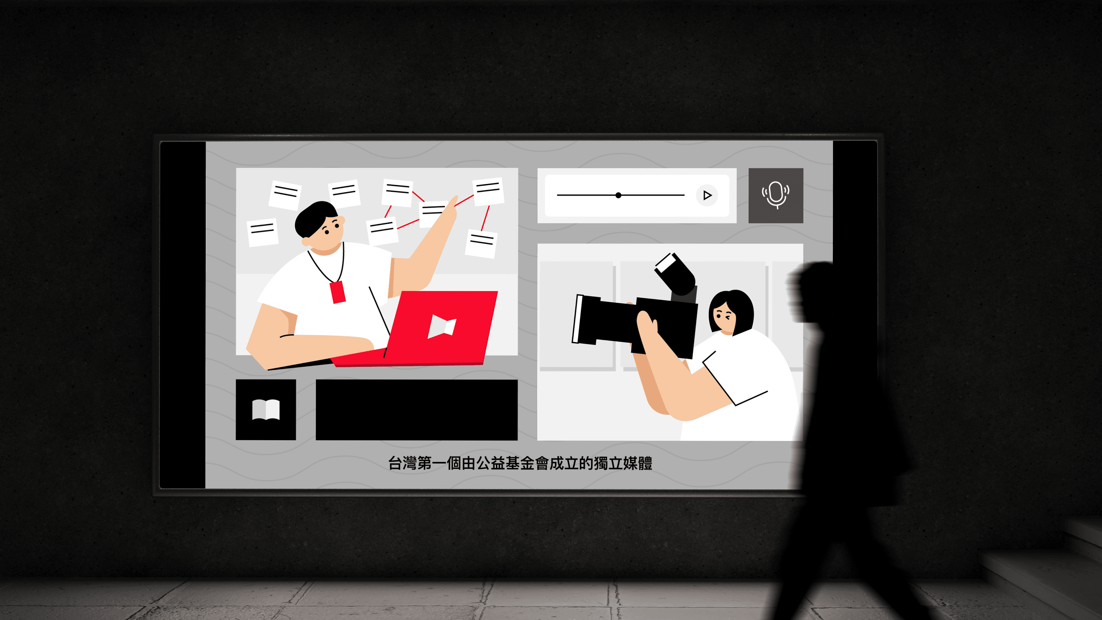 為了推廣《報導者》並呼籲更多人有意識的選擇媒體,我設計一支以吸引新讀者為目標的品牌廣告,將其理念「視覺化」,並透過更好理解的視覺語言傳達給大眾,讓更多人認識《報導者》以提升品牌曝光度。此專案為個人專案,在三個月內從影片企劃、文案設計,到完成插畫、配音及動態製作。