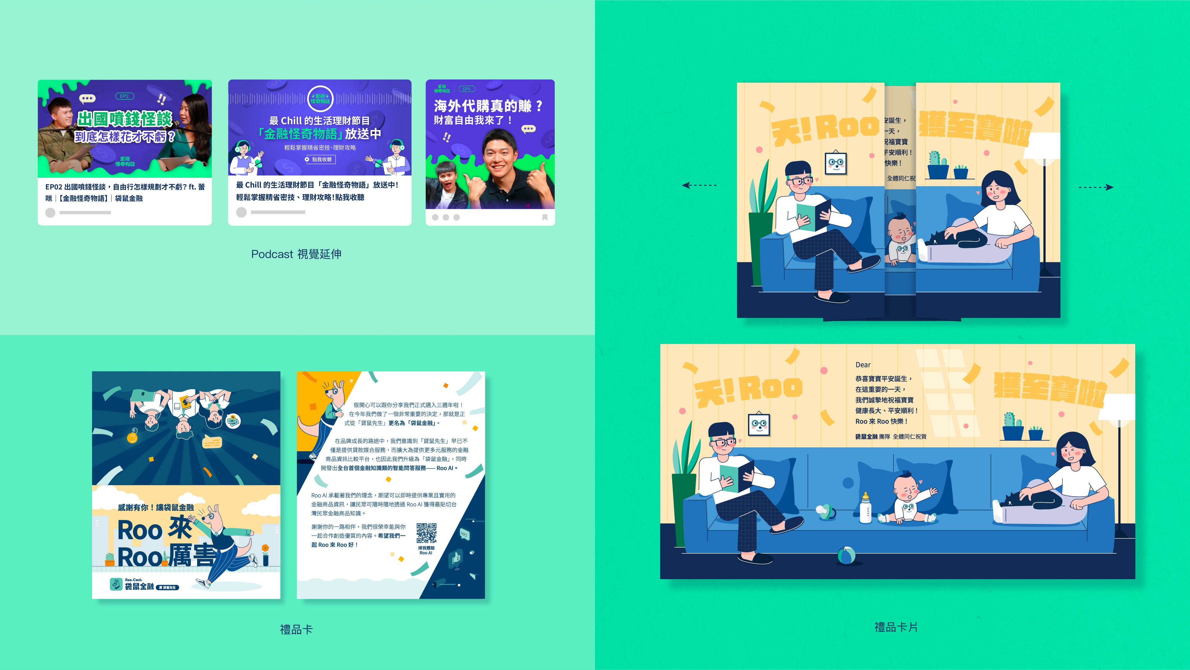 (左下) KOL 禮品卡片:宣傳 Rebrand 及 Roo AI 功能