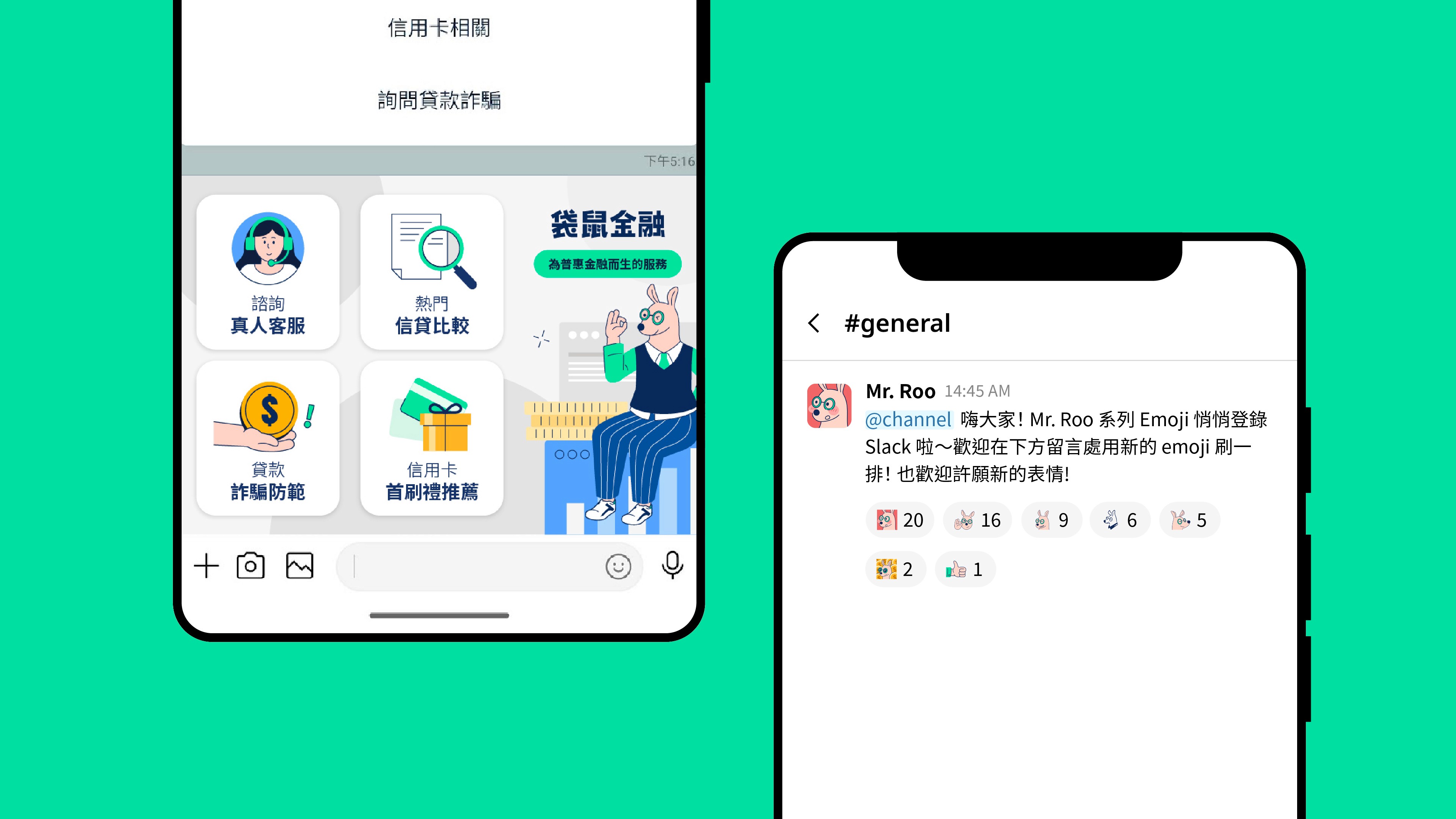 (右) 內部 Slack 帳號 Emoji 設計